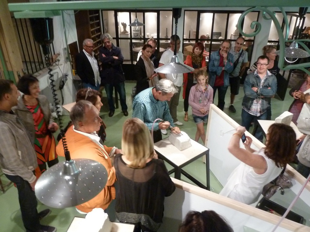 Autour de belles oeuvres en marbre et terre, bronze et plâtre, de peintures et de linogravures et de bijoux artisanaux.